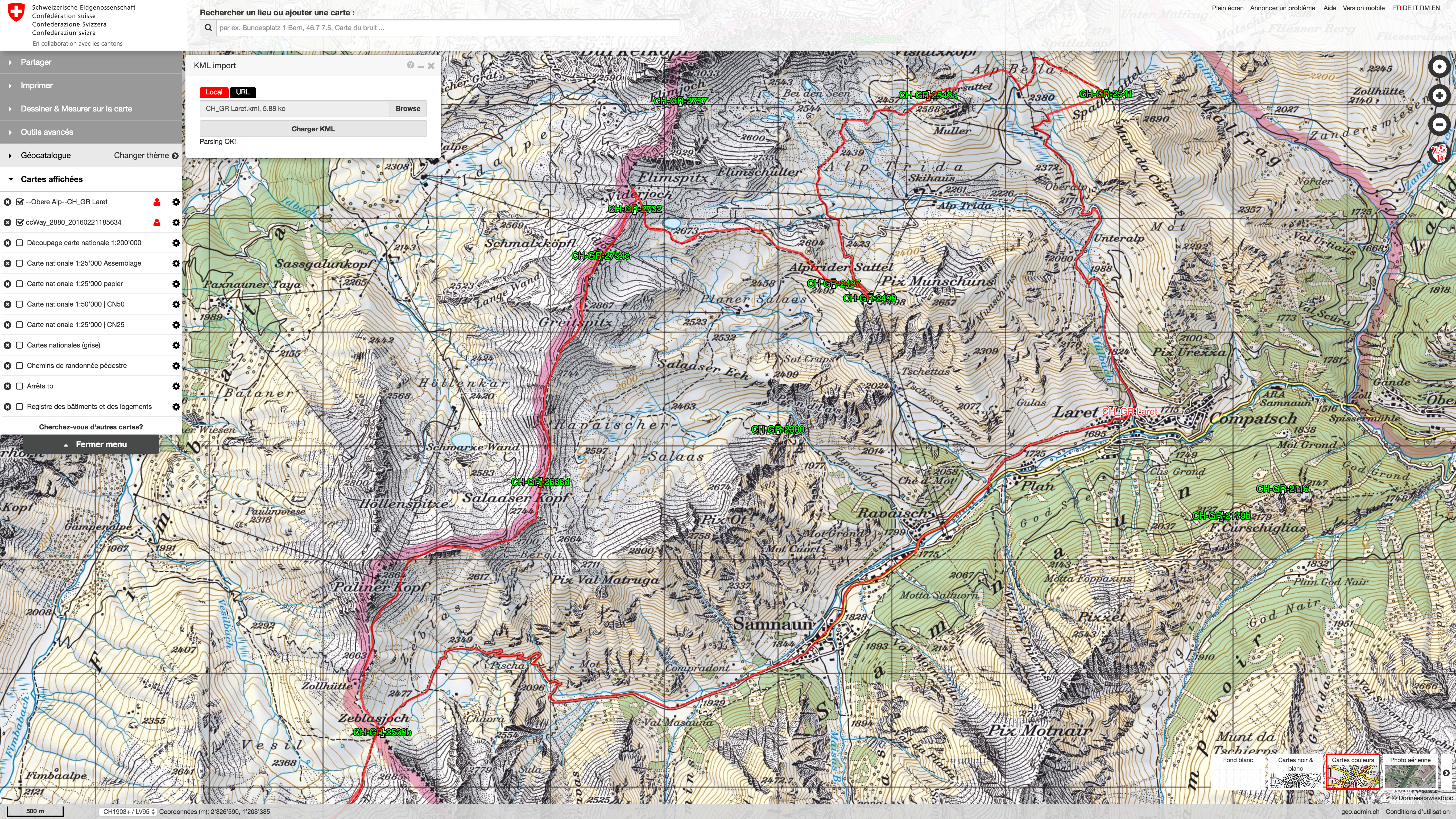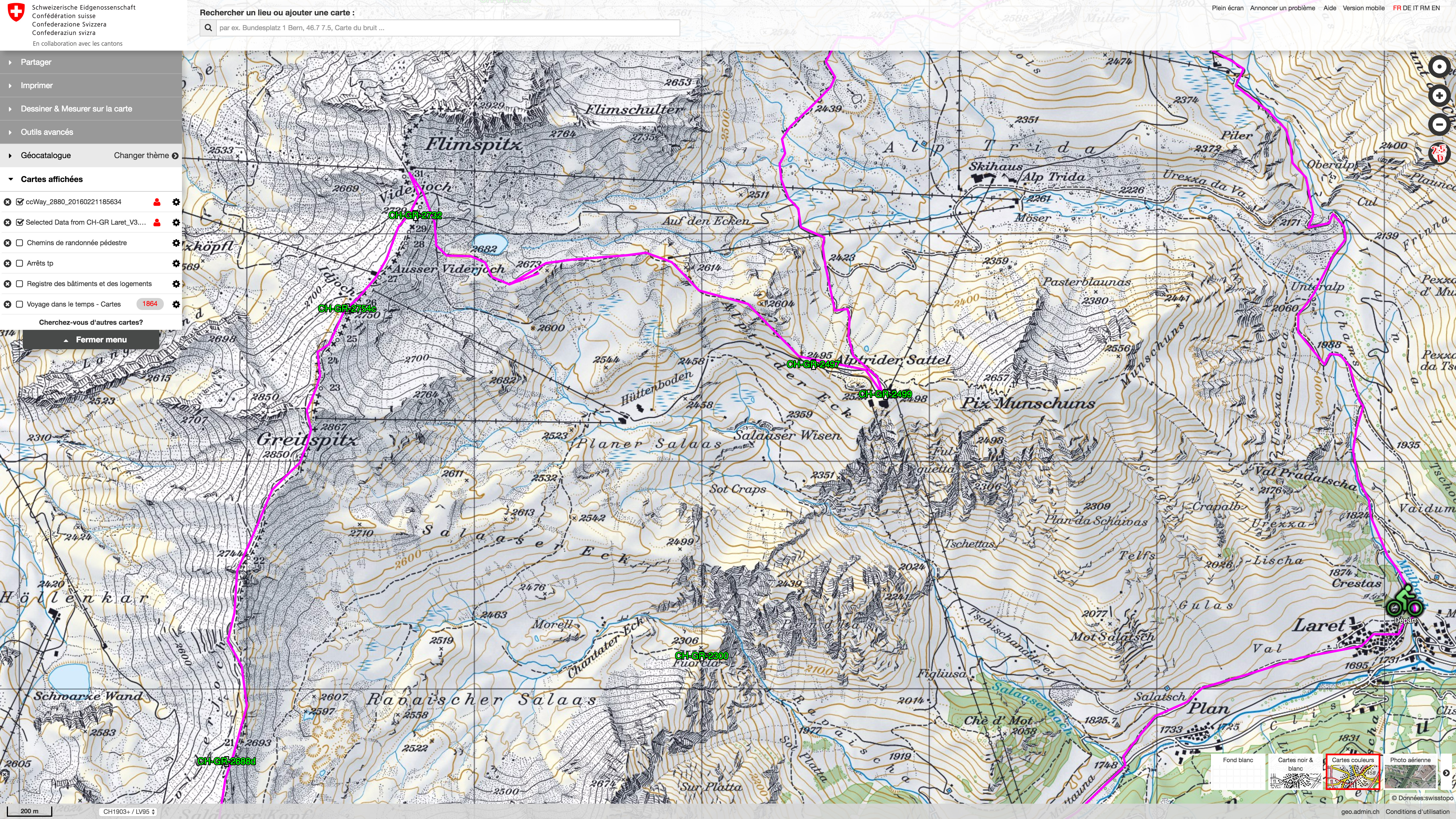 - Carte digitale swisstopo avec Trace et Cols